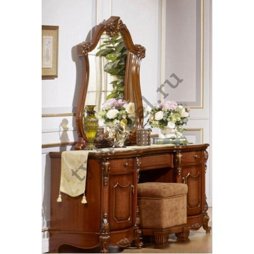 3136 Виктория Туалетный столик с зеркалом, цвет: ТЕМНЫЙ ОРЕХ, банкетка