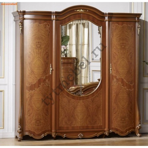 3172 Юлиана Шкаф 4-х дв. с зеркалом, МДФ, 2200х670х2290 см, цвет: ТЕМНЫЙ ОРЕХ
