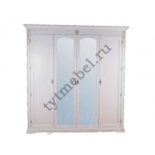 С05. Шкаф 4-х дверный с зеркалом "Валенсия" "WARDROBE WITH MIRROR" (210*65*220). Цвет: white (белый)