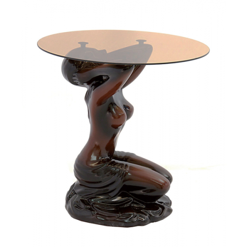 Стол журнальный Афродита имеет стеклянную столешницу диаметром 600 мм. Высота стола 610 мм. Столешница - стекло 6 мм. Крепление столешницы к подстолью стола с помощью присосок. Подстолье стола изготовлено из гипса.