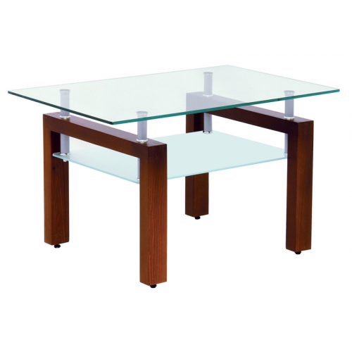 Стол журнальный Элегант 1.1 имеет стеклянную столешницу 800*500 мм. Высота стола 445 мм. Столешница - стекло 8 мм. Полка - стекло 6 мм. Дизайн выполнен методом матирования. Крепление столешницы выполнено по УФ-технологии. Стойки стола изготовлены из МДФ, окрашеной в цвет венге.