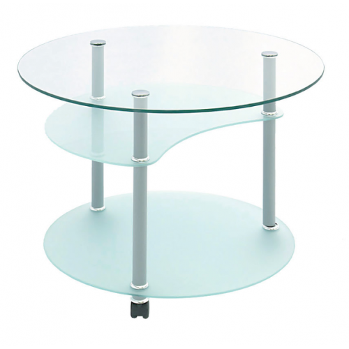Стол журнальный Луна М имеет стеклянную столешницу диаметром 700 мм. Высота стола 520 мм. Стойки стола металлические c декоративным покрытием имеют колесные опоры.