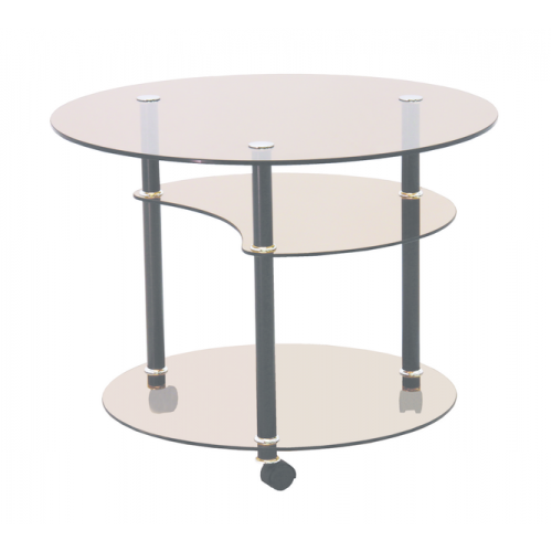 Стол журнальный Луна М имеет стеклянную столешницу диаметром 700 мм. Высота стола 520 мм. Стойки стола металлические c декоративным покрытием имеют колесные опоры.