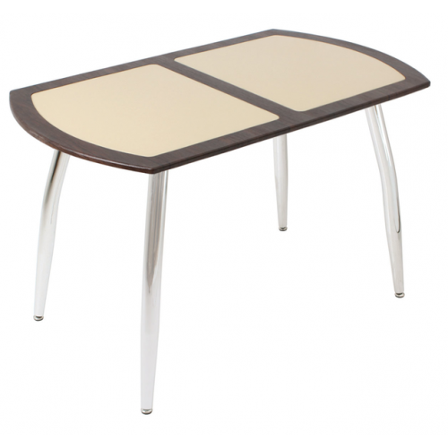 Стол обеденный Вектор 1.3 имеет столешницу МДФ 1200*700 мм., со стеклянными вставками. Высота стола 740 мм. Стеклянные вставки - стекло 4 мм. Крепление столешницы к каркасу стола винтовое. Каркас стола металлический, покрыт порошковой краской. Стойки стола металлические, покрытие - хром.