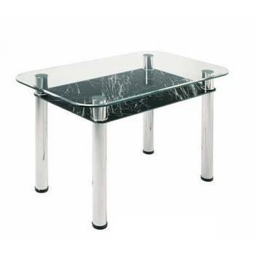 Стол обеденный 3.4 имеет стеклянную столешницу 1000*600 мм. Высота стола 720 мм. Столешница - стекло 10 мм. Обработка кромки - фацет. Полка - стекло 8 мм. Крепление столешницы выполнено по УФ-технологии. Стойки стола металлические, труба диаметром 60 мм, покрытие - хром.