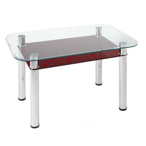Стол обеденный 3.4 имеет стеклянную столешницу 1000*600 мм. Высота стола 720 мм. Столешница - стекло 10 мм. Обработка кромки - фацет. Полка - стекло 8 мм. Крепление столешницы выполнено по УФ-технологии. Стойки стола металлические, труба диаметром 60 мм, покрытие - хром.