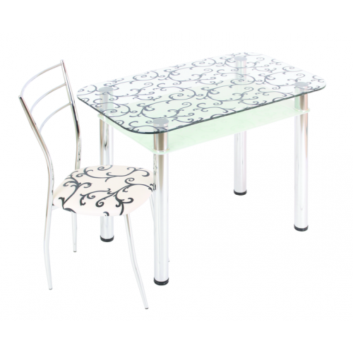 Дизайн обработки стекла выполнен методом фотопечати и покраски. К данной модели идеально подойдет стул: В603 ДП28 белый, В609 ДП28 белый, F-68 ДП28, Тюльпан1 ДП28 белый.