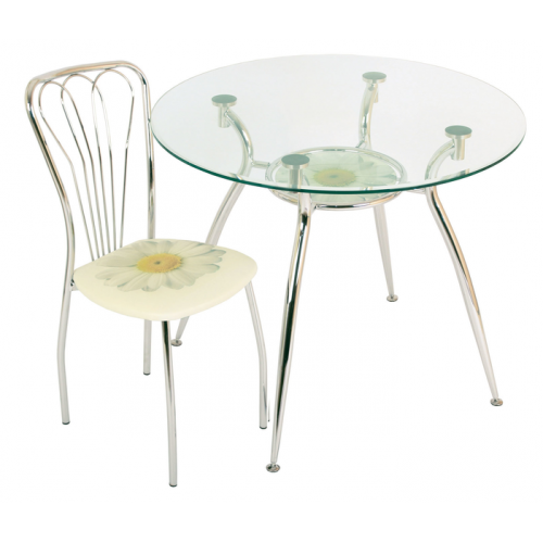 Дизайн обработки стекла выполнен методом фотопечати. К данной модели идеально подойдет стул: В603 ДП35, В609 ДП35, Тюльпан1 ДП35.