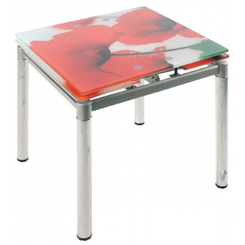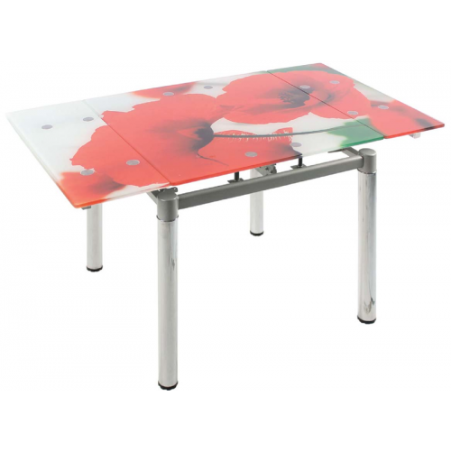 Стол обеденный раздвижной ТВ-008-5 имеет стеклянную столешницу 700*700 мм., в разложенном виде столешница 1200*700 мм. Высота стола 750 мм. Столешница - стекло 10 мм. Крепление столешницы к каркасу стола выполнено по УФ-технологии. Каркас стола металлический - раздвижной, покрыт порошковой краской. Стойки стола металлические, покрытие - хром.