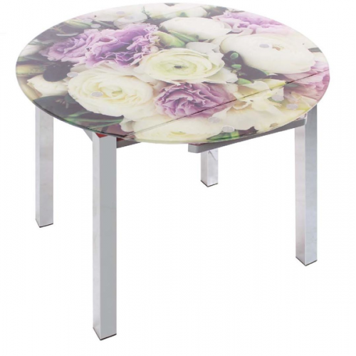 Дизайн обработки стекла выполнен методом фотопечати. К данной модели идеально подойдет стул: Тюльпан1 ДП62.