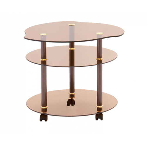 Стол журнальный Подставка под факс имеет стеклянную столешницу 580*580 мм. Высота стола 520 мм. Столешница - стекло 8 мм. Полки - стекло 6 мм. Стойки стола металлические c декоративным покрытием имеют колесные опоры.
