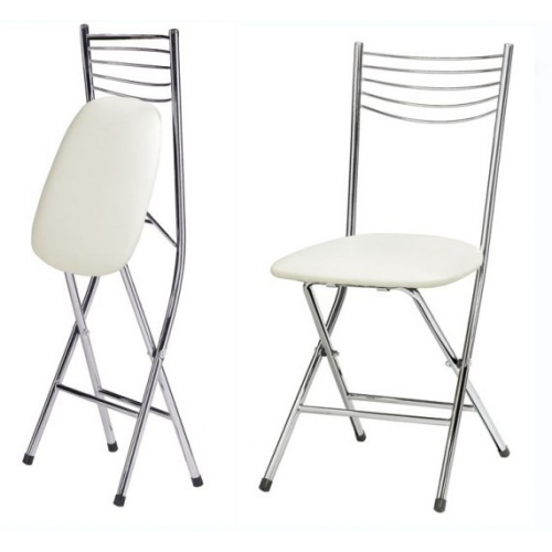 Стул В607 имеет мягкое сиденье. Высота стула 850 мм. Крепление сиденья к каркасу с помощью шурупов. Каркас стула металлический, раскладной, покрытие - хром.