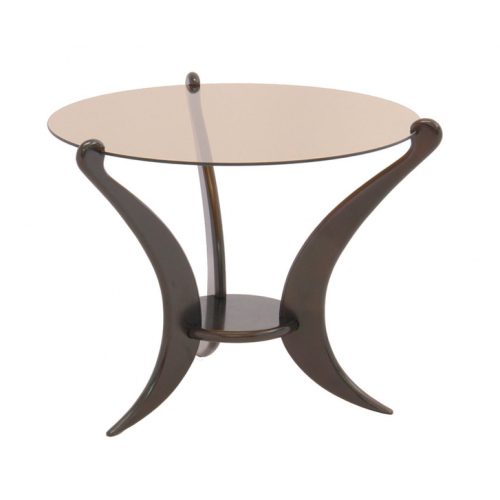 Стол журнальный Варьете 3 имеет круглую столешницу диаметром 600 мм. Высота стола 430 мм. Столешница - стекло 6 мм. Каркас стола разборный, изготовлен из фанеры толщиной 21 мм., окрашеной в цвет венге.