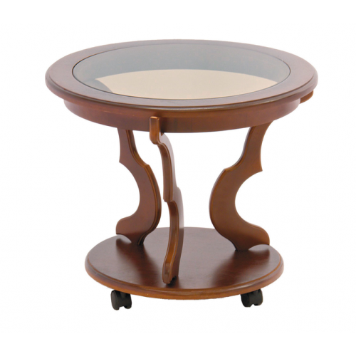 Стол журнальный Варьете 9 имеет стеклянную столешницу - стекло 6 мм. Подстолье каркаса диаметром 610 мм. Высота стола 530 мм. Каркас стола разборный, изготовлен из фанеры толщиной 21 мм., окрашеной в цвет венге и имеет колесные опоры.